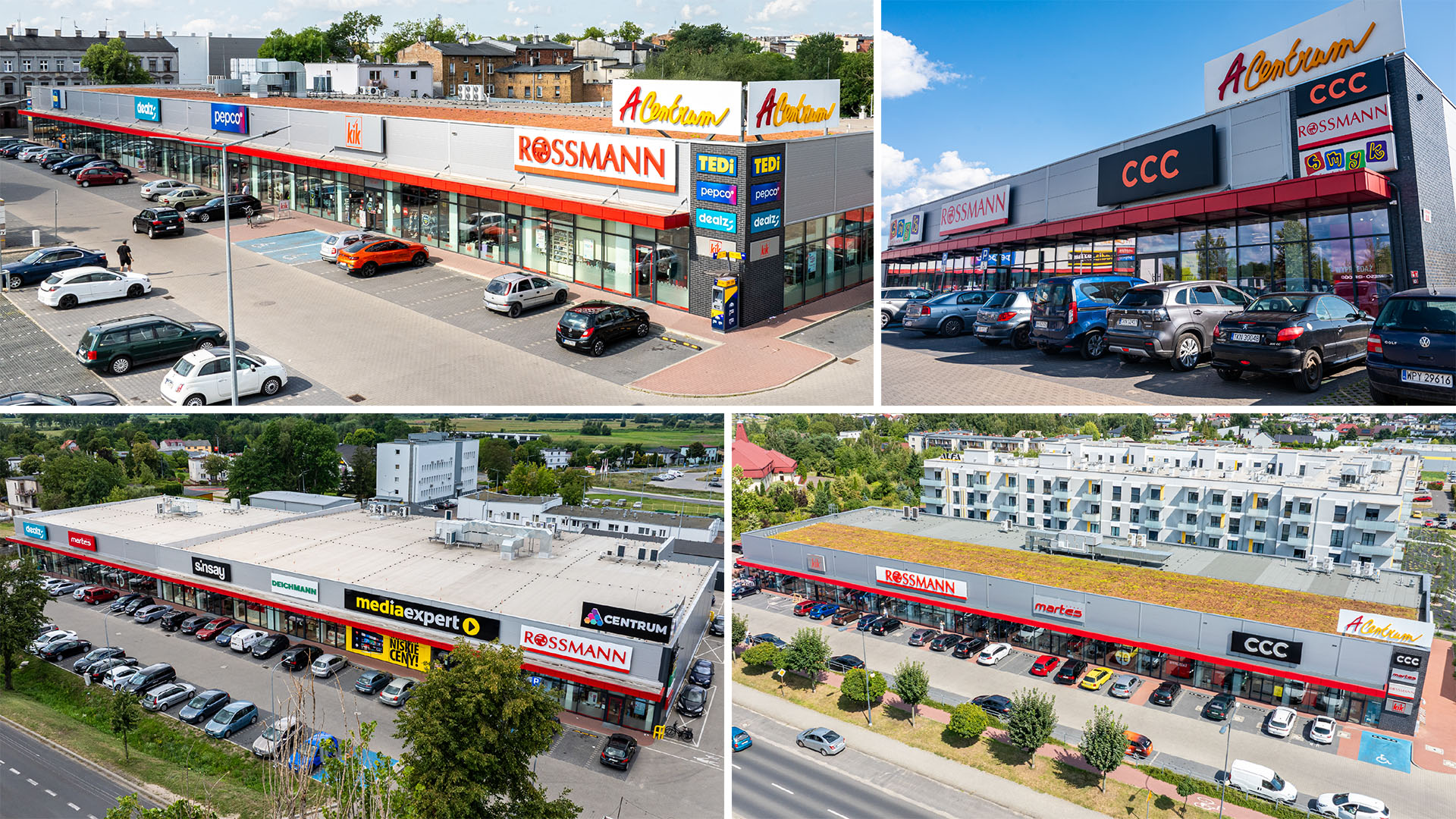 Another advantage is their medium size. Customers don’t have to spend hours wandering through endless aisles; instead, they can find everything they need in one place. Each center offers a carefully curated mix of stores, including popular global brands such as Rossmann, CCC, Pepco, and Kik. These proven retail chains, which are market leaders, provide a wide range of products at affordable prices, making A-Centrum a favorite destination for everyday shopping. Moreover, these brands are often the only outlets in their respective towns, making them a preferred choice for customers.